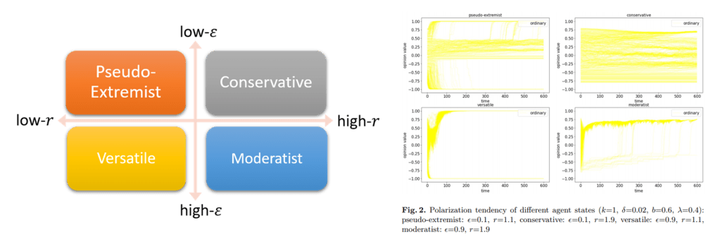 Live streaming platforms have become popular media for young people in China to interact with others online. While the synchronized interaction with live streamers is said to make users feel more engaged than simply watching a video, it brings the risk of online violence when the words become highly aggressive and hurtful. This research analyzes such extremized situations by modeling opinion evolution during live streaming. An agent-based system is built to mimic audiences’ opinion interactions with socio-cognitive theories, including social-judgment theory, information overload, and entertainment motivation. The simulation results reveal that opinion polarization could happen even without the engagement of extremists, if audiences easily repulse others’ opinions. When positive and negative extremists are involved, the results suggest that their proportions are responsible for the polarization among ordinary audiences. The impacts of socio-cognitive factors are also discussed in the reseach.